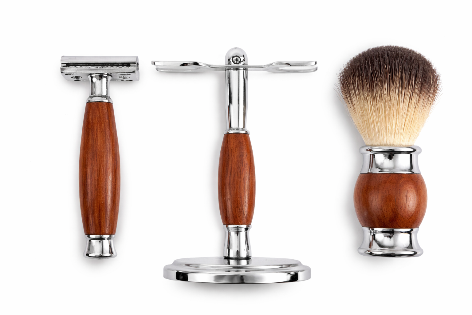 - chromovaný holicí strojek s dřevěným držadlem