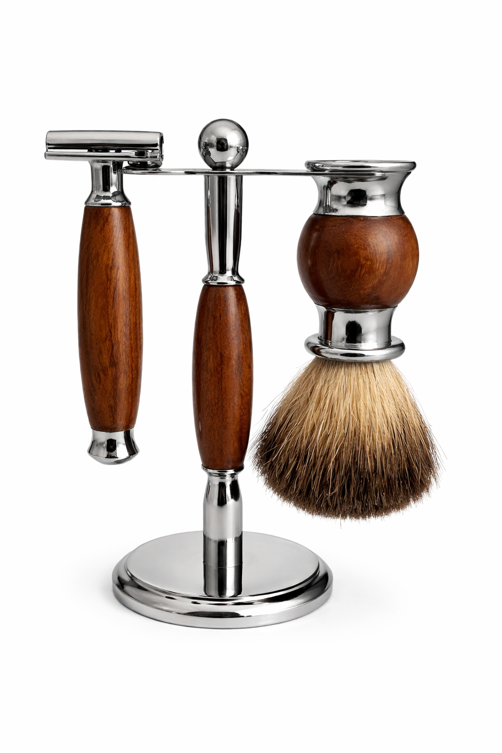 - holicí štětka s vlasem pravého jezevce a s kombinací chromu a dřeva