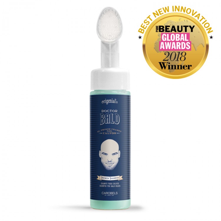 - speciální čistící šampon pro péči o pokožku bez vlasů se speciálním masážním aplikátorem