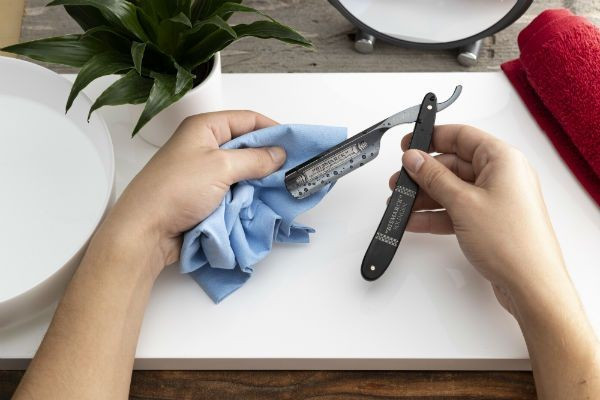 Po použití se musí holicí břitva především opláchnout čistou tekoucí horkou vodou a pak se nechá dokonale oschnout. Je velmi důležité nedotýkati se ostří břitvy !! Na ostří ani na střence (rukojeti) nesmí zůstat žádné viditelné otisky prstů, které se opatrně odstraní čistým měkkým hadříkem. Pozor také na dezinfekční prostředky a kyselé látky, které rovněž poškozují ostří i střenku břitvy. Pokud se břitva delší dobu nepoužívá, doporučuje se před jejím uložením potřít ostří řídkým olejem, který neobsahuje žádné kyselé přísady a pryskyřice. Rovněž je důležité vždy střenku břitvy důkladně očistit a zbavit jí zbytků holicích přípravků a to jak zvenku, tak i zevnitř a poté důkladně osušit. Když je břitva takto ošetřena, je možné ji teprve zabalit a uložit.